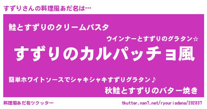| 意味不明あだ名 | 『住所不定無職すずり(1歳)』 |
