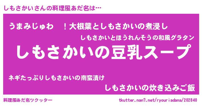 | ピコ太郎風あだ名 | 『シモ六郎』『ピシ三郎』『シコ八郎』 |