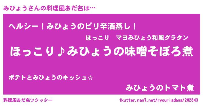 | 意味不明あだ名 | 『ペロリンみひょう』『自称みひょう』 |
