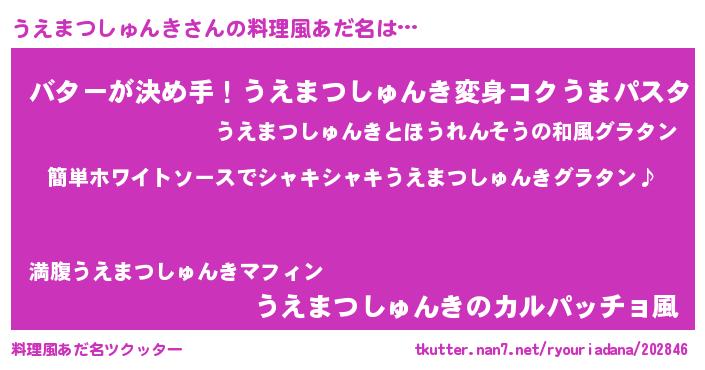 | 男性向けラノベタイトル風あだ名 | 『うえまつしゅんきの嫁は女の子じゃないと思った?』 |
