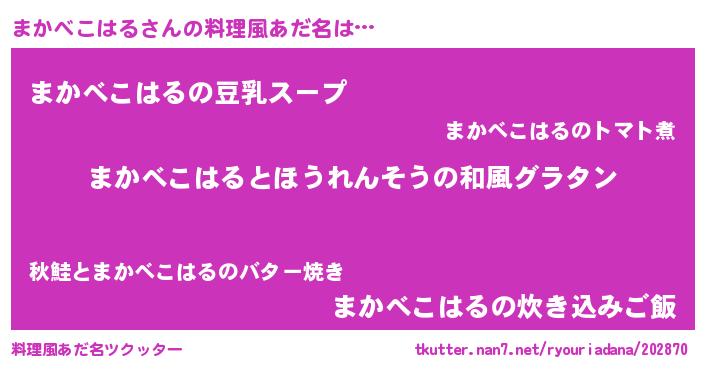 | ヘコむあだ名 | 『まかっぺ』『まかべこはる(小並感)』 |