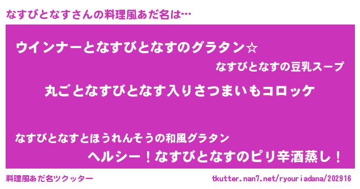 | 女子向けラノベタイトル風あだ名 | 『乙女ゲームの破滅フラグしかない悪役なすびとなすに転生してしまった…』 |