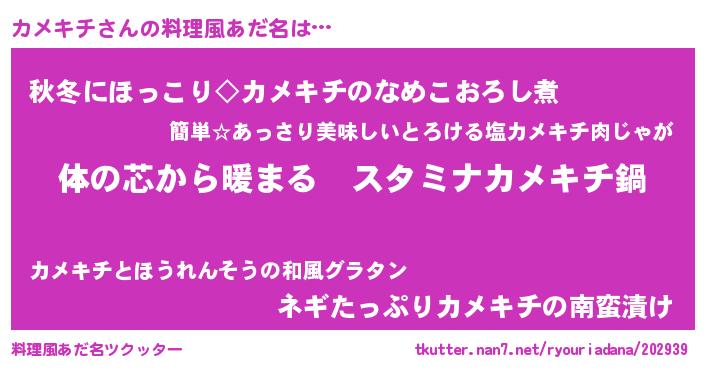 | 欧米人風あだ名 | 『カメキチクリステル』 |