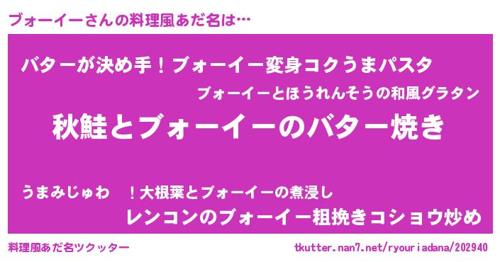 | ヒーロー風カッコイイあだ名 | 『ネオブォーイー』『愛の使者ブォーイー』 |