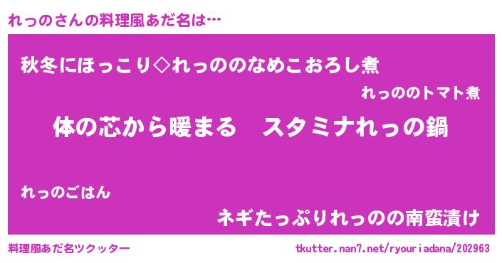 | 女子向けラノベタイトル風あだ名 | 『れっのの雑貨屋さん』 |
