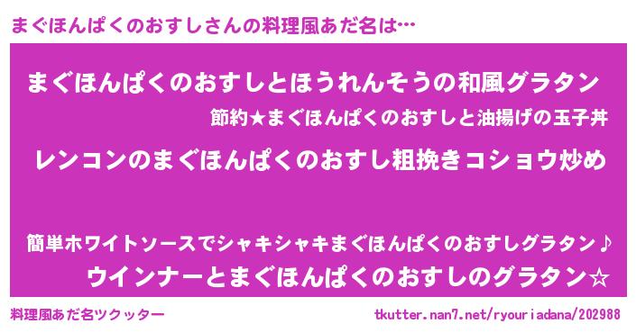 | 意味不明あだ名 | 『自称まぐほんぱくのおすし』 |