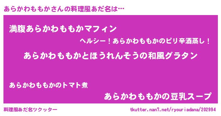 | ヘコむあだ名 | 『あらかわももか(笑)』『あらお』 |
