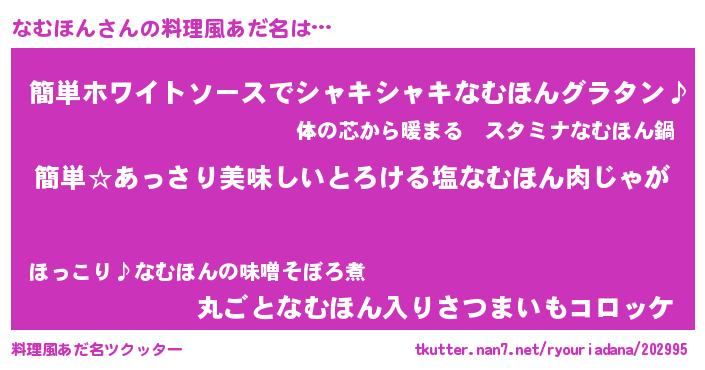 | ヘコむあだ名 | 『なむほん(笑)』『なむぷりん』 |