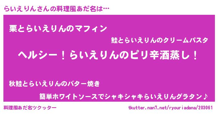 | ヘコむあだ名 | 『らいっ子』『らいえりん(笑)』 |