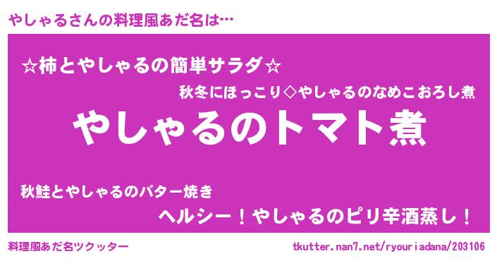 | 欧米人風あだ名 | 『ダニエルやしゃる』 |