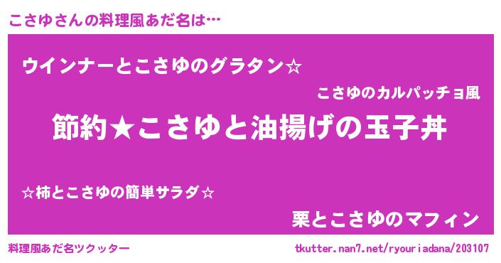 | ヒーロー風カッコイイあだ名 | 『スーパーコサユ』『ウルトラこさゆマン』 |