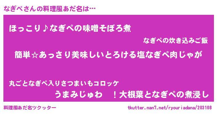 | 意味不明あだ名 | 『永久保存なぎぺ』『ペロリンなぎぺ』 |