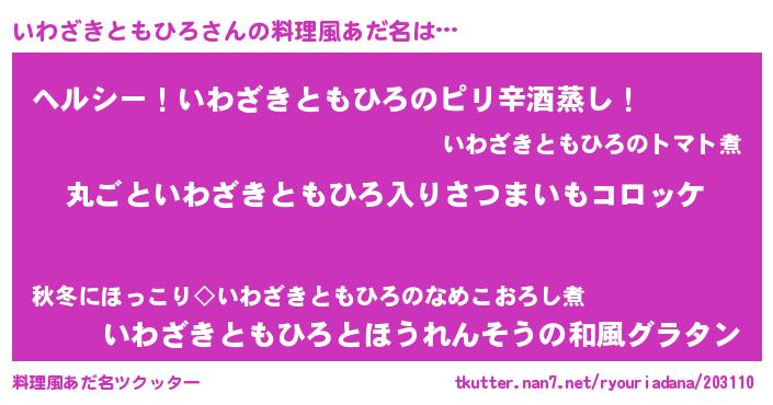 | ヒーロー風カッコイイあだ名 | 『仮面イワダー』『ネオイワザキトモヒロ』 |