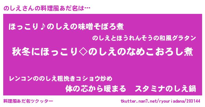 | 意味不明あだ名 | 『ペロリンのしえ』『のしえフォーエバー』 |