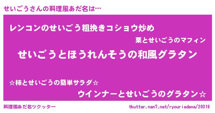 | 意味不明あだ名 | 『ニラ科せいごう属』『自称せいごう』 |