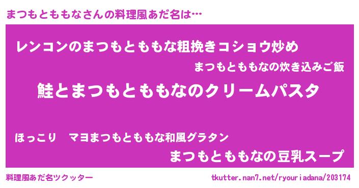 | ヘコむあだ名 | 『まつっちょ』『まつもとももな(笑)』 |