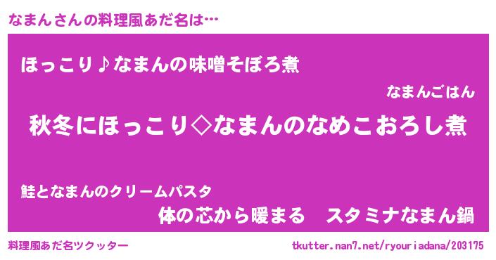 | ヒーロー風カッコイイあだ名 | 『スーパーナマン』『ウルトラなまんマン』 |
