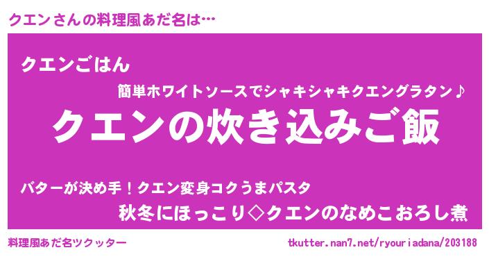 | 男性向けラノベタイトル風あだ名 | 『うちのクエンが世界を掌握している!』 |