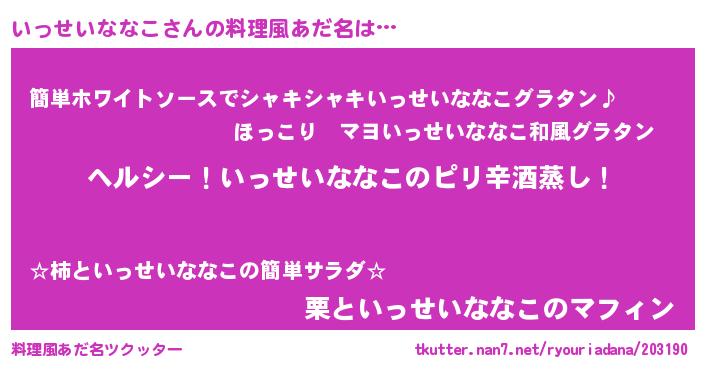 | 胡散臭い通販商品みたいなあだ名 | 『テレビで話題の高麗人参…その名も「いっせいななこ」』 |