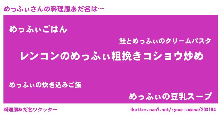 | 胡散臭い通販商品みたいなあだ名 | 『ガンによく効くアガリクス…その名も「めっふぃ」』 |