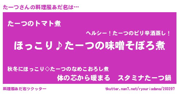 | ヒーロー風カッコイイあだ名 | 『スーパーターツ』『正義の使者たーつ』 |