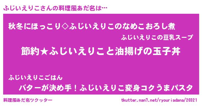 | 男性向けラノベタイトル風あだ名 | 『フジイエリコアートオンライン』 |