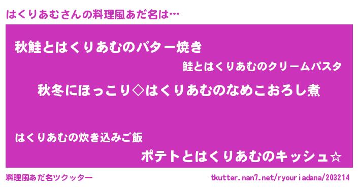 | 男性向けラノベタイトル風あだ名 | 『はくりあむに滅ぼされるだけの簡単なお仕事です』 |