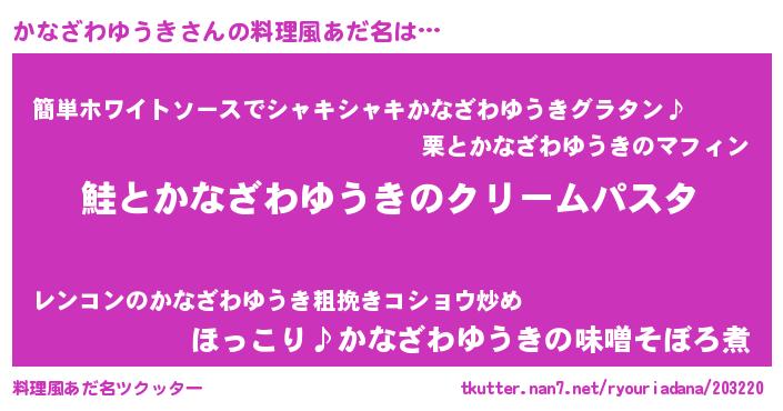| 女子向けラノベタイトル風あだ名 | 『死神かなざわゆうきの再婚』 |