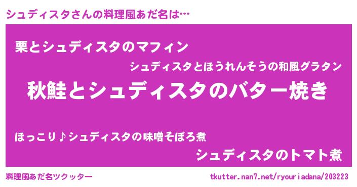 | 意味不明あだ名 | 『永久保存シュディスタ』 |
