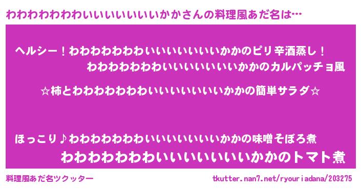 | 男性向けラノベタイトル風あだ名 | 『緋弾のワワワワワワワイイイイイイイカカ』 |