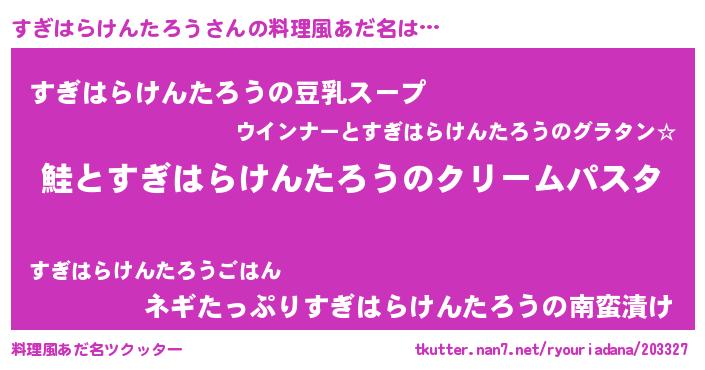 | 意味不明あだ名 | 『眠気覚ましガムすぎはらけんたろう味』 |