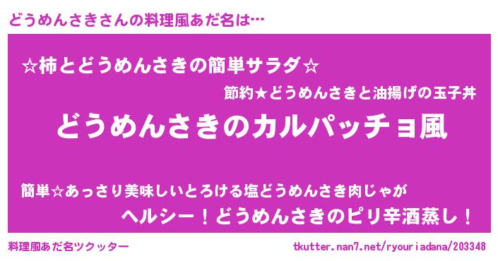 | 女子向けラノベタイトル風あだ名 | 『どうめんさきが死なない童話 林檎のどうめんさきの診療簿』 |