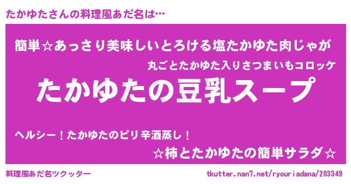 | ヘコむあだ名 | 『たかっ子』『たかゆた(笑)』『豆乳』 |