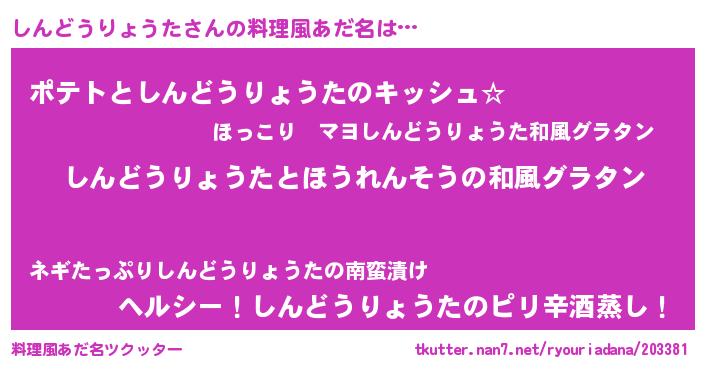 | 肩書あだ名 | 『しんどうりょうた中将』 |