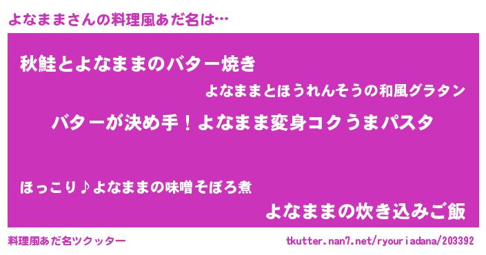 | 女子向けラノベタイトル風あだ名 | 『よなまま恋絵巻』『よなままの契約王妃』 |