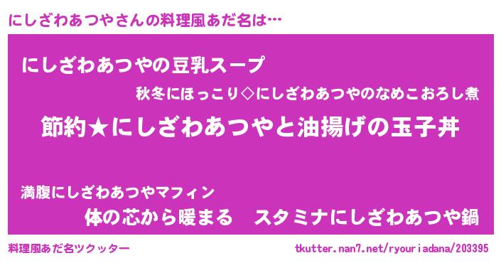 | ポケモン風あだ名 | 『ニシチュウ』『ヒニシザワアツヤ』 |