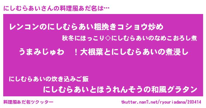 | ヘコむあだ名 | 『レバニラ』『にしを』『にしもー』 |