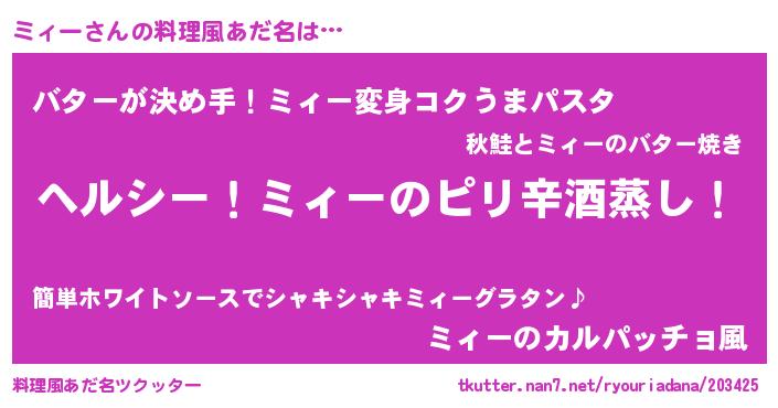 | ピコ太郎風あだ名 | 『ミミ太郎』『ピコミ郎』『ミィ十郎』 |