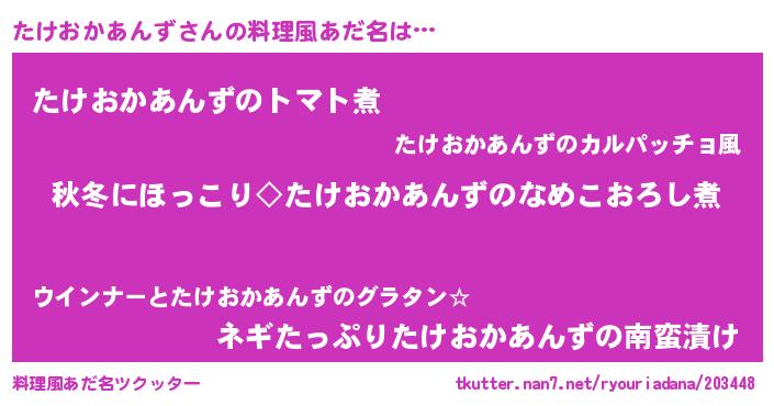 | 欧米人風あだ名 | 『アンジェラ・たけおかあんず』 |