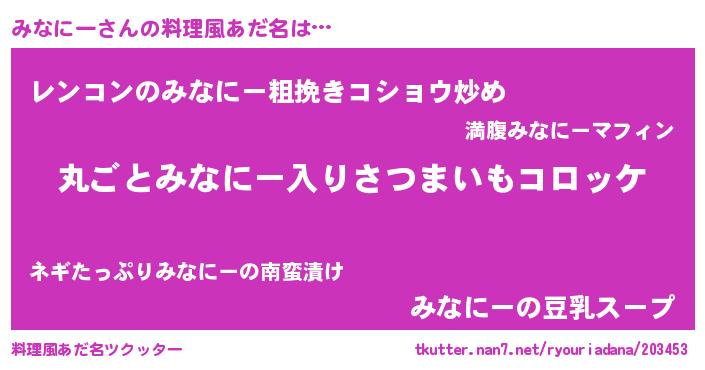 | ヒーロー風カッコイイあだ名 | 『仮面ミナダー』『超時空戦士ミナニー』 |