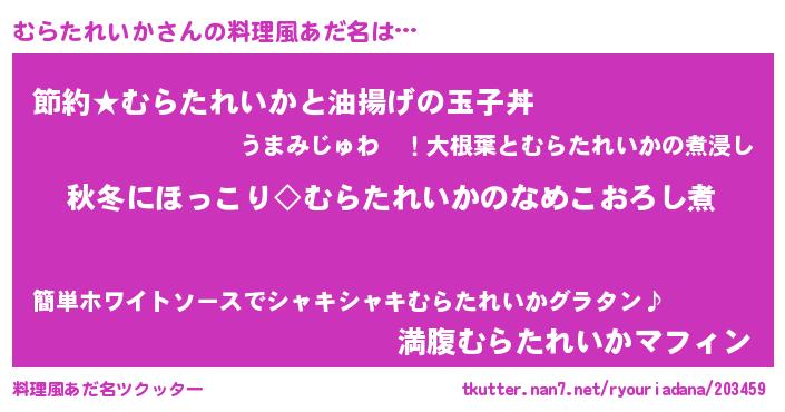 | ヘコむあだ名 | 『むらにゅー』『むらたれいか(震え声)』 |