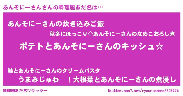 | ピコ太郎風あだ名 | 『アン次郎』『ピア四郎』『アア太郎』 |