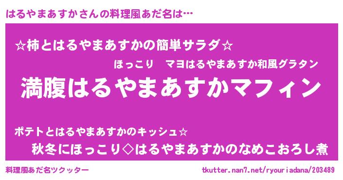 | 胡散臭い通販商品みたいなあだ名 | 『絶対に幸福をもたらす健康食品…その名も「はるやまあすか」』 |