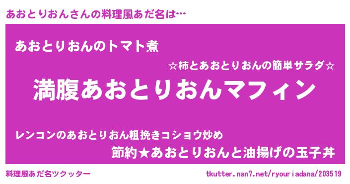 | 男性向けラノベタイトル風あだ名 | 『あおとりおんという概念が存在しない退屈な世界 』 |