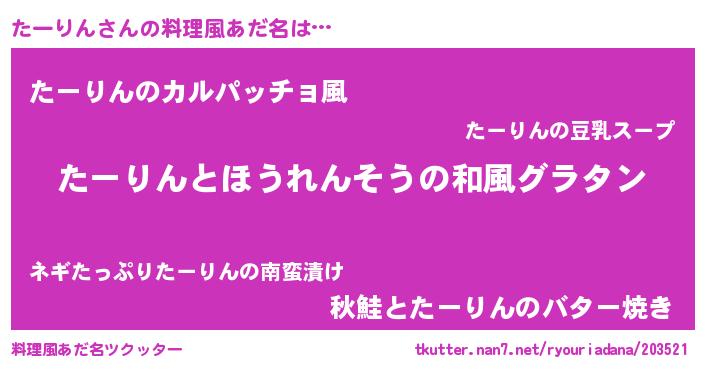 | 女子向けラノベタイトル風あだ名 | 『たーりんの玉の輿計画!』 |