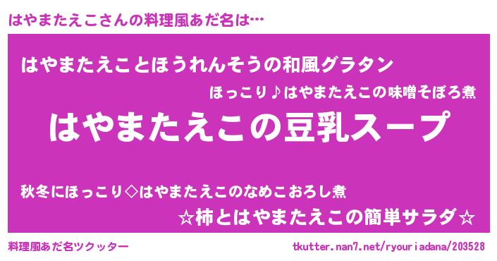 | 女子向けラノベタイトル風あだ名 | 『はやまたえこは平凡を望む』 |