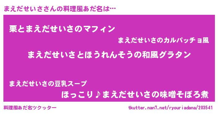 | 恥ずかしいあだ名 | 『プリティーまえだせいさ』『まえちん』 |