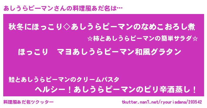| 意味不明あだ名 | 『住所不定無職あしうらピーマン(10歳)』 |