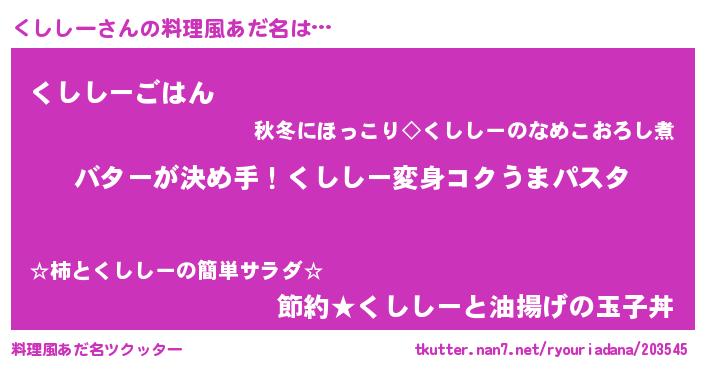 | ヘコむあだ名 | 『くしにゅー』『くしっぺ』 |