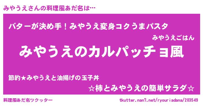 | ピコ太郎風あだ名 | 『ミミ太郎』『ミコ二郎』『ミヤ太郎』 |